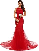 AL'OFA Women's O Neck Sleeveless Backless Tulle Chapel